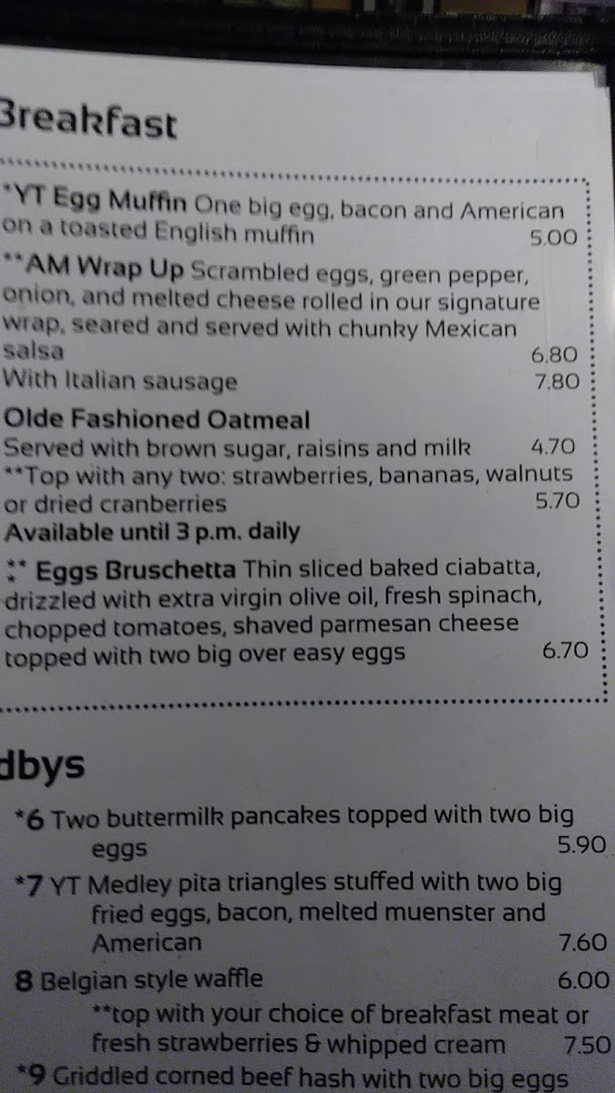 Yours Truly Chagrin Falls Menu